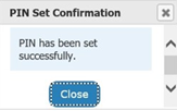 - PIN Set Confirmation appears upon successful PIN creation. Click Close.